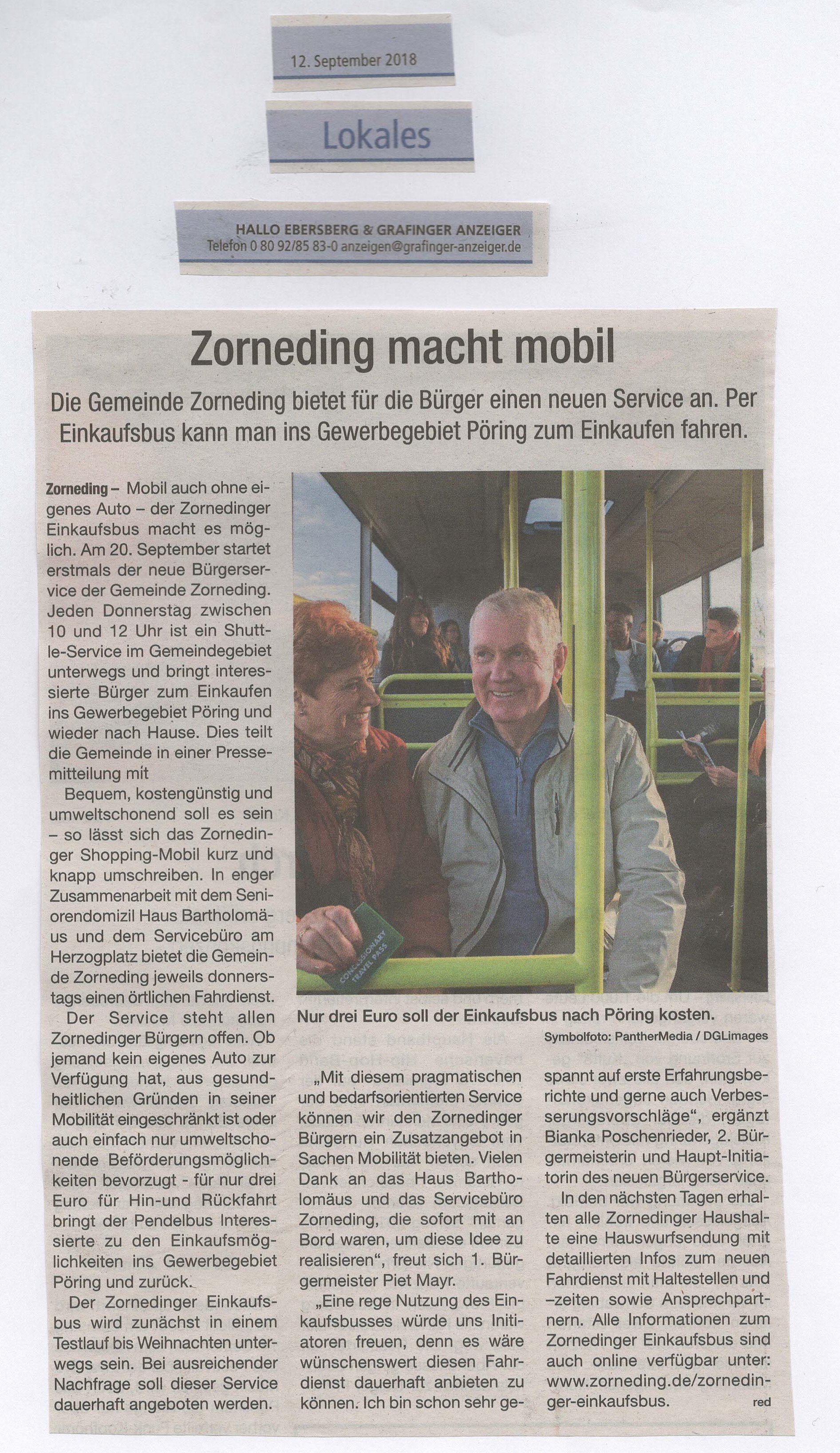 Süddeutsche Zeitung, Ortsportrait Zorneding am 13.04.2018: